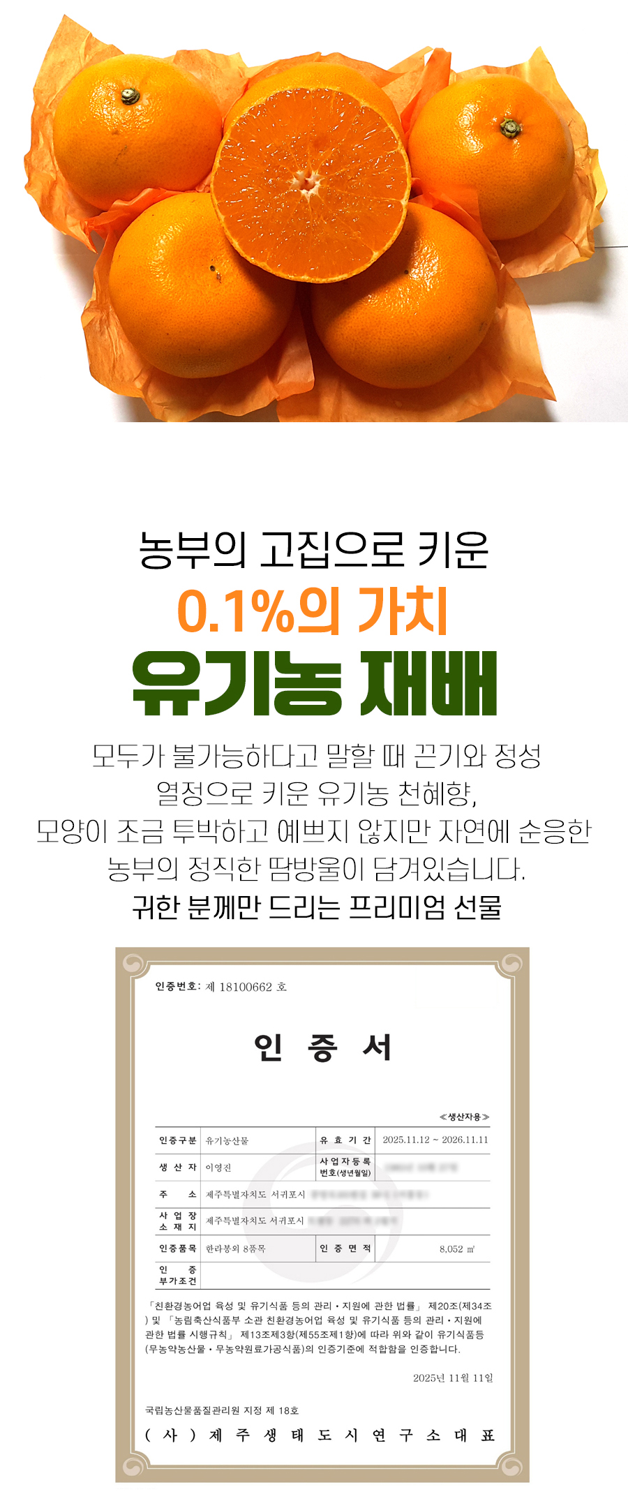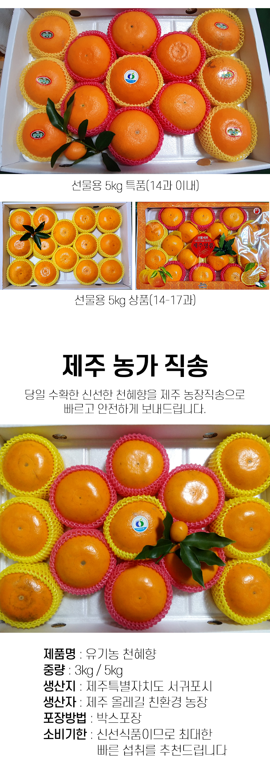 | 7. 상품구성 | 유기농 천혜향 3kg / 5kg |