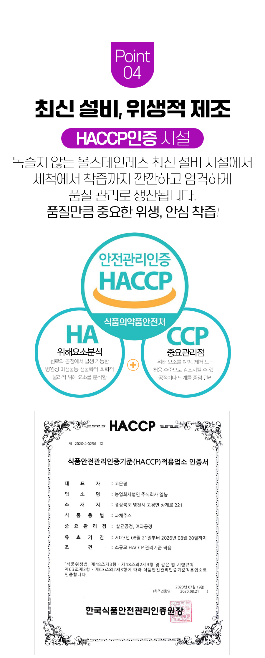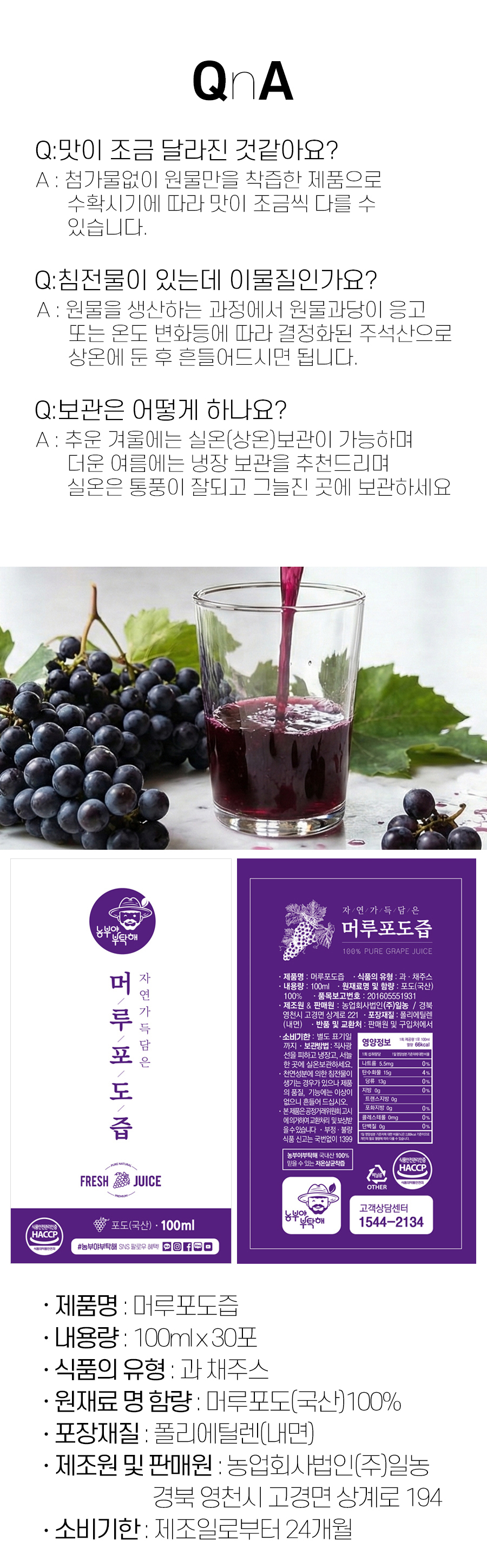 | 1-4. 제조연월일, 소비기한 또는 품질유지기한 | 매년 11월 착즙 / 제조일로부터 24개월 |